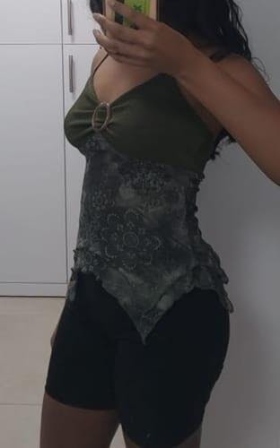 Turn up the Y2K energy with this vintage-inspired cami. A contrast bust panel gathers into a resin ring, while the adjustable tie-up halter frames the shoulders. The main body features a distressed floral print and a fluttery handkerchief hem for a soft, subculture spin. Made from a smooth polyester blend with slight stretch for a close.
